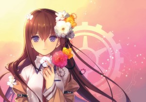 Konachan.com – 148336 blush brown_hair flowers jpeg_artifacts long_hair makise_kurisu misti purple_eyes steins;gate tie 15.05.13 / mmandrakep