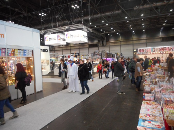 Noch ein Stückchen voller, ging es zum Freitag hin, dem Einkaufen entgegen. Dieses Jahr waren die Gänge allerdings etwas breiter, da waren die Verhältnisse nicht ganz so schlimm wie zum Teil in den vorherigen Jahren. Typische Schlangen bildeten sich auch vor den Frauentoiletten, wohingegen bei den Männern so etwas nicht vorhanden war. Manchmal ist man da als Frau schon ein bisschen neidisch. Interessant war auch zu beobachten, wie Shima und Drake konsequent zur Shojo-Ecke von Tokyopop gerannt sind und ich zur Shounen-Ecke, wo ich stand. Allerdings trennt nur Tokyopop die Genres so, Carlsen, Panini, Egmont und Kazé haben da alle ihren einzelnen Stand. Anime werden meiner Meinung nach auch langsam etwas günstiger, zumindest kam es mir so vor. Im Internet hat man die Preise noch sehr oft im dreißiger Bereich, aber bei Kaze habe ich oft auch günstigere Volumes gesehen. Die Zeit für mich und die Sailor Moon Boxen wird noch kommen, aber zu dieser Messe war es noch nicht so weit. Aber bald, bald … das bin ich meinem alten, zehnjährigen Ich noch schuldig. Einen leicht gestressten Ninotaku haben wir auch dieses Jahr wieder gesehen, aber mein Interesse an diesem Menschen ist sowieso sehr gering. Das passt dann schon irgendwie.