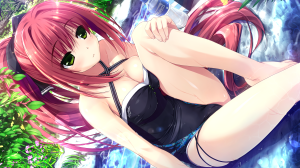 Konachan.com – 238847 barefoot blush breasts cleavage clochette game_cg green_eyes haruru_minamo_ni! ibuki_asumi long_hair ponytail red_hair shintaro swimsuit water 10.08.17 / mmandrakep