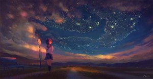 Konachan.com – 240212 clouds feel_(nasitaki) grass kneehighs original scenic seifuku signed skirt sky sunset 10.08.17 / mmandrakep