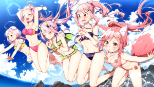 Konachan.com – 247422 barefoot bikini blush breasts bubbles cleavage clouds demon foxgirl group horns navel necklace ponytail red_eyes sky swimsuit tail water wings 10.08.17 / mmandrakep