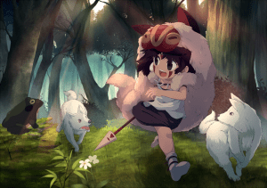 Konachan.com – 248123 animal brown_hair forest loli mononoke_hime onion_pikupiku san tree weapon wolf 26.09.17 / mmandrakep