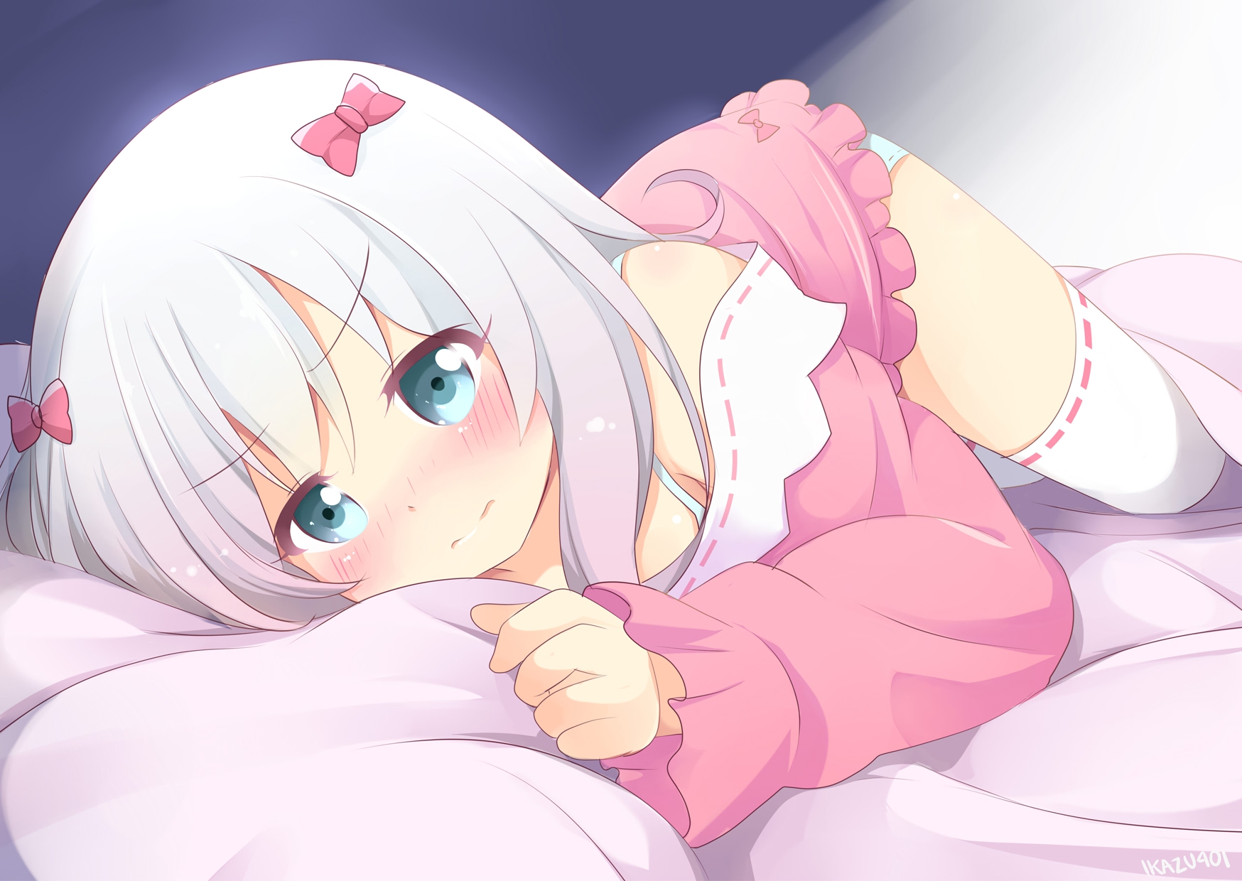 Konachan.com – 250378 agung_syaeful_anwar aqua_eyes blush bow eromanga-sensei izumi_sagiri loli short_hair shorts signed thighhighs 26.09.17 / mmandrakep