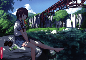 Konachan.com – 250540 barefoot brown_eyes brown_hair clouds original popsicle scan scenic seifuku shade short_hair sky tree ugume water watermark 26.09.17 / mmandrakep