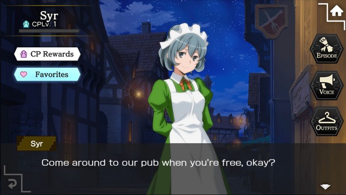Auch andere Charaktere stehen stark im Fokus des Spiels. Jeder Charakter den man mindestens einmal im Gacha gezogen hat wird in den Interaktionen freigeschalten. Das heißt mit 20 richtigen Gacha-Pulls hat man das ganze Roster und kann das Spiel komplett freischalten. Wenn man mit diesen Charakteren in der Stadt plaudert oder sie im Kampf dabei hat steigt der CP-Level (was auch immer das heißt), was ihre speziellen Charaktermissionen freischaltet. Diese kann man spielen, um noch mehr über die Welt und Geschichte des Spiels freizuschalten, zusätzlich sind die CP für jeden der drei Stories (Bell, Ais, Lefiya) extra. Hierbei werden bei Bell die Story des Animes, bei Ais und Lefiya die Story von Sword Oratoria nacherzählt, jeweils aus deren Perspektive.