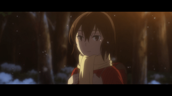 A1-Pictures hat mit diesem Anime ganze Arbeit geleistet, vermutlich auch dadurch das der Anime keine fantastischen Kampf-Effekte oder Ähnliches haben musste. Die verträumte kleine Stadt im späten Winter (der Anime spielt in der Vergangenheit im Februar/Anfang März) wirkt genau so wie man sich eine kleine Stadt im Winter vorstellt. Die Zeit des Reruns cinematisch darzustellen (mit den schwarzen Balken oben und unten die man vom Kino her kennt) war eine interessante Entscheidung, die dem Anime jedoch eine besondere Identität gibt. Am Beginn des Reruns merkt man wie schwer sich Satoru in seiner eigenen Vergangenheit zurechtfindet. Er erinnert sich weder an seinen Sitzplatz in der Schule noch an die Namen seiner besten Freunde. Auch der Clash zwischen seiner jugendlichen Stimme und seinen erwachsenen Gedanken ist ein interessanter stylistischer Faktor, der auch gegen Ende des Animes einen wichtigen Plotpoint darstellt. Musikalisch und visuell kann dieser Anime vollends überzeugen und emotional spricht er mehr als nur ein paar Punkte an, die einem Tränen in die Augen treiben können.