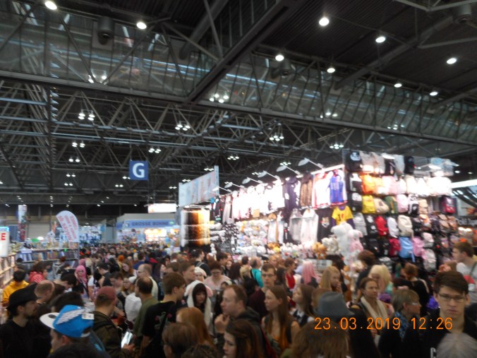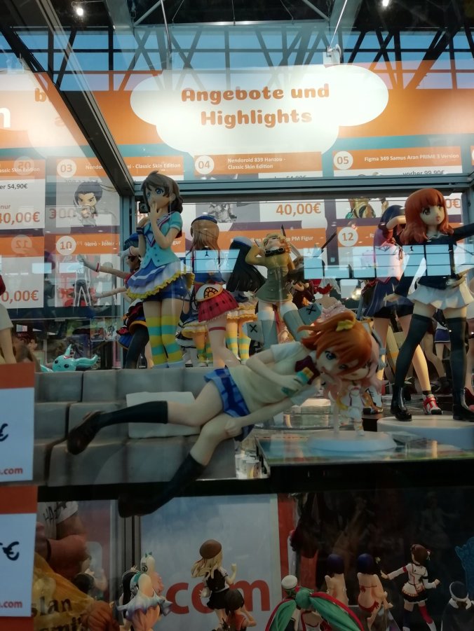 Ein paar Einkäufe habe ich an diesem Tag auch noch gemacht, aber das waren hauptsächlich Figuren und Merchandise. Preislich ging es da dieses Jahr sogar mit den Prize-Figuren, aber man merkt schnell wenn man an einem überteuerten Stand steht. Über 50 € für eine Prize-Figur ist einfach Wucher. Viel nach gebrauchten Manga konnten wir gar nicht schauen, weil die Halle eben so verdammt voll war. Ein Blick beim Bring & Buy haben wir aber hinbekommen, auch wenn der zwischen der Künstlerecke ziemlich versteckt war. Der Samstag hatte aber auch seine süßen Seiten für mich – da ich Yuri aus Doki Doki Literature Club gecosplayed habe, gab es erstaunlich viele junge Mädels die ein Bild mit mir machen wollten. Eine schrie mich sogar an, was ich erst gar nicht bemerkt habe. Ansonsten lief aber alles friedlich, jeder bekam sein Bild und alle waren glücklich. Wer übrigens nach der Messe noch unbedingt in asiatischen Restaurants essen möchte, sollte gerade zur Messezeit vielleicht noch ein paar Plätze im voraus reservieren. Haben wir nicht gemacht, weswegen wir dann auf dem Heimweg in Dresden angehalten haben. Kann man zwar machen, ist aber auch nicht so optimal.