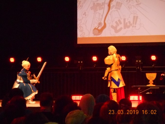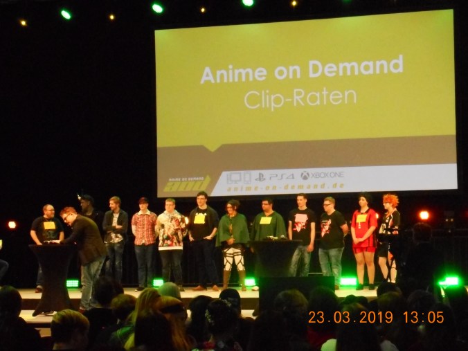 Samstag war der Tag mit den meisten Besuchern, keine Frage. Selbst wenn wir uns in andere Hallen getraut hätten, wären wir ab einem bestimmten Punkt wahrscheinlich nicht mehr rein gekommen. Anime on Demand war gerade dabei, gegen zwölf Uhr ein Anime-Raten mit Synchron-Clips zu machen, als eine Meldung in der ganzen Halle zu hören war. In der Halle sind zu viele Menschen, es kommt keiner mehr rein (und auch irgendwie nicht raus, aber das hat sich später geklärt) und es war echt extrem. Die Gänge waren einfach nur noch verstopft, man kam nur schwer weiter und wahrscheinlich muss auch irgendwas passiert sein wenn so eine Meldung kommt. So etwas hatten wir in all den Jahren wirklich noch nie so extrem, viele Leute auf der Messe sind ja normal, aber so extrem das eine Warnmeldung geschalten werden muss? So blieben wir erst mal bei der großen Bühne und haben uns nach dem Quiz danach noch den Cosplaywettbewerb angesehen. Wir waren im Vorjahr nicht bei diesem Wettbewerb, aber ich habe in meinem Leben genug solche Wettbewerbe gesehen und kann eins behaupten: das war mit einer der schlimmsten Wettbewerbe die ich je gesehen habe. Die neuen Moderatoren konnten wenig dafür, aber unter diesen Teilnehmern gab es vielleicht eine Hand voll (oder mehr) die mir gefallen hat. Das klingt jetzt vielleicht etwas streng, aber Hilfe. Das war irgendwann nicht mehr auszuhalten ohne den Kopf abzuschalten. Die letzte Dame die dann aus dem Phantom der Oper sang, war aber das Highlight des Wettbewerbes und hat auch verdient gewonnen. Zum Rest enthalte ich mich lieber, weil hier sicherlich schon genug gesagt wurde.