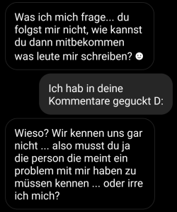 **Hier das Perfekte Beispiel wie diese Leute nicht mit sich reden lassen, man kann schreiben was man möchhte. Die Meinung ist festgefressen. Und ja, sie schrieb, dass sie den Verlauf löschen wird, sie hat diesen auch gelöscht, doch ich habe mir noch Screenshots geholt, weil ich wusste, ich werde ihn brauchen.