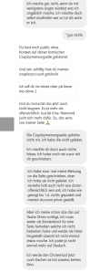 Denn dann tauchte eine Seite, namens Cosplaymeinung auf Instagram auf. Dieser postete Einsendung verschiedenster User mal mit Namen, mal anonym. Dies gefiel der Cosplay Community natürlich überhaupt nicht, denn ihre PERFEKTE Welt sollte nicht so verdorben werden! – Obwohl sie das schon lange ist!
